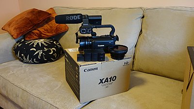 For Sale in Original Box with manual and accesories: $1299 Gently used Canon XA10 with 4 batteries, Sony Wide Angle Adapter (VCL-HG0758 ). 32GB SD card, and Rode Videomic that has been customized to fit in shotgun mount on camera.