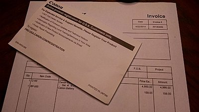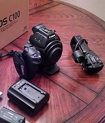 $4000 + shipping/insurance for: -C100 Body, body cap, side grip and audio handle, 89 hours, pristine -Dual Pixel Autofocus upgrade -Unopened C-Cup eyecup created by our very own Andrew Miller -BP-955 Canon battery, charger, strap and manual. -I recycled the original box. I purchased the C100 as a kit from B&H on December 31, 2013 with the 24-105mm lens. I will be keeping this lens. Once available, I sent it to Canon for the autofocus upgrade. PayPal will be the easiest form of transaction. I'll send the receipts of the original purchase and upgrade as well. Call, text (six-one-nine, two-four-six, eight-nine-six-eight) or PM from forum |