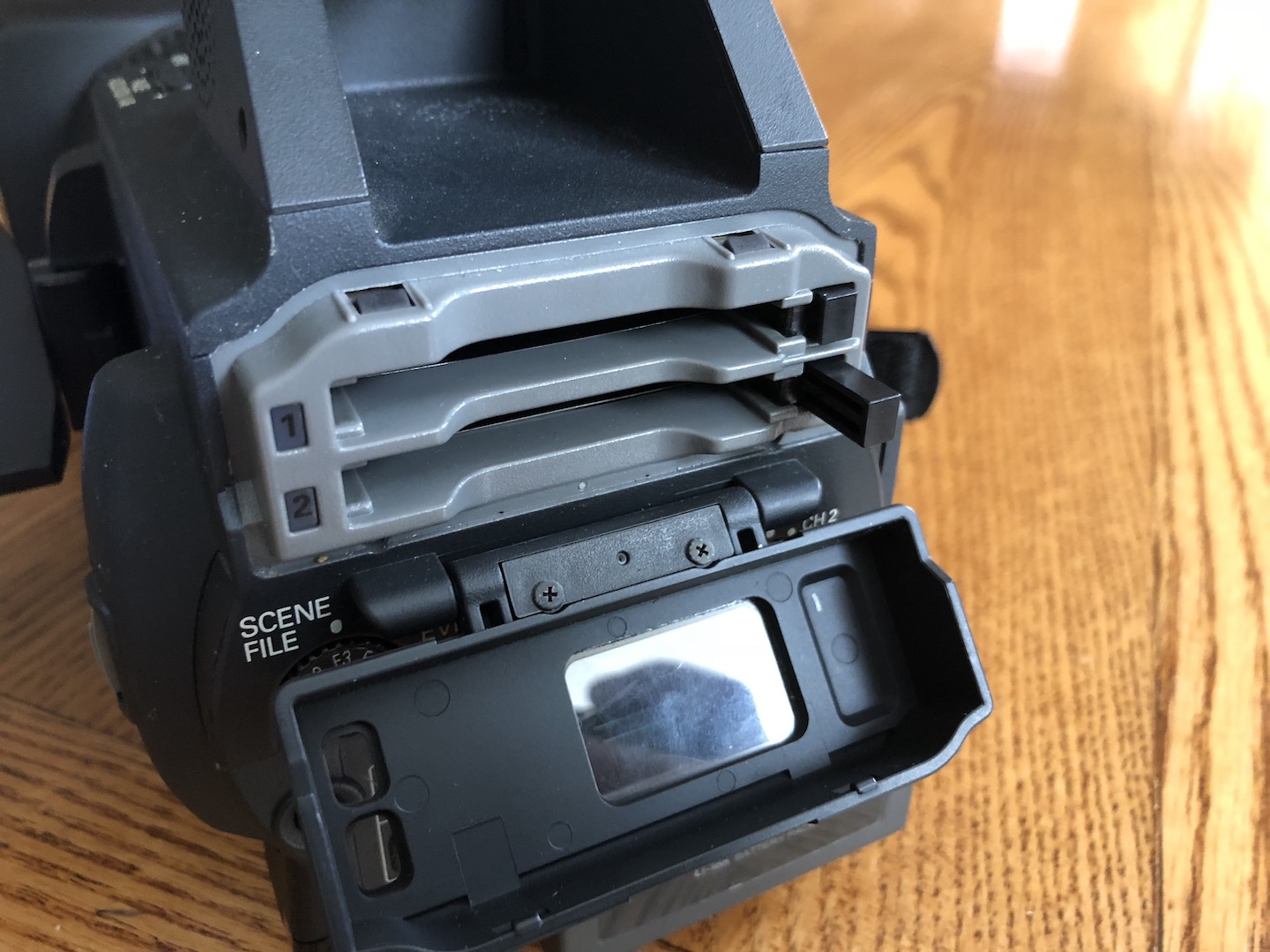 Does what it says on the tin. Good shape with accessories shown. One of the P2 card slot eject buttons isn't working correctly but the slot still operates and you can insert and eject P2 cards manually. PayPal fees and US shipping on me!
