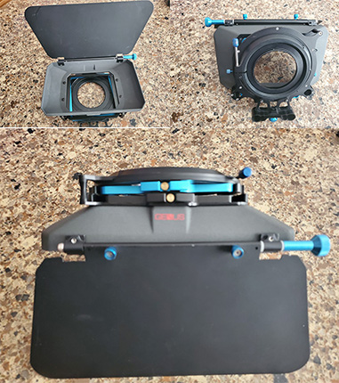 The Schneider Optics glass is $350. It contains Black Frost ½, Skin Tone Enhancer, Circular Polarizer, ND.6 Solid and ND.6 Soft Edge. 4x4 The Atomos HS2 has never been opened. I think it’s been discontinued now, but if you have a need for it, it’s $75. Porta-Brace bag is large and in excellent shape. It’s approximately 20x12x12. I’d like to get $100 but I can’t include shipping, since I have no clue what that would be. Audio Technica AT835ST is a great stereo mic. $75 Genus Matte Box $150 |