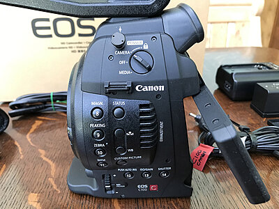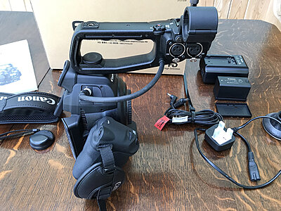 Bought new direct from CVP in late 2012. I had Canon UK install the DPAF Upgrade on it in 2014. Was primarily the B cam for my Sony EX3 (then my PMW-300) and has been hardly used since I got my Sony FS5 in late 2015, hence only 90 Hours! Works perfectly. Not a mark or scratch on it (I always baby my gear). Comes with original box and all original accessories, covers/caps, charger, cords etc. that were supplied in that box - and all those are as new too. Also comes with a second Canon BP-955 battery. Both batteries show 'Moderate' condition on the C100 Status screen. Can't see me using it any more so would like to offer it to Forum members first and then it might go on eBay in a while. Would make a good B or C cam for those of you using higher end Canon Cinema cams or a good starter/hobbyist cam for someone. Price is £990 including VAT plus courier charge at whatever that will cost. Note: I am VAT registered so will supply a VAT receipt as well. I can also supply copies of the original purchase receipt from CVP and DPAF Upgrade receipt from Canon, if desired. UK ONLY enquiries please - just email me via the 'Contact Me' link at the bottom of every page on my website. Direct messages on the forum rarely seem to get through. Various phone snaps of my C100 attached. Thanks for looking.