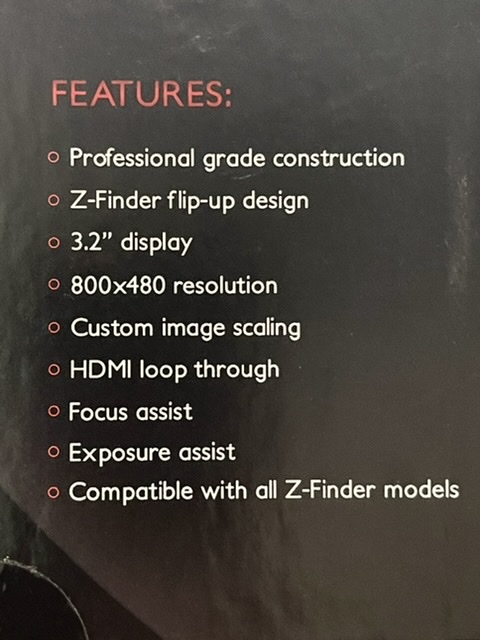 Re: Zacuto Z-Finder Pro EVF HDMI 3.2" Display