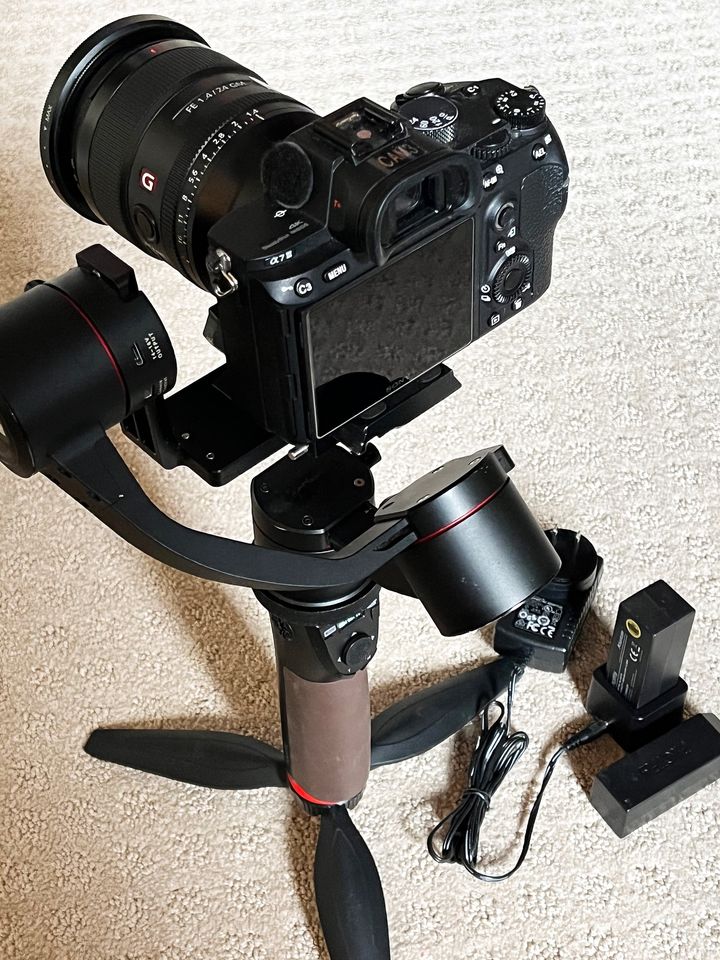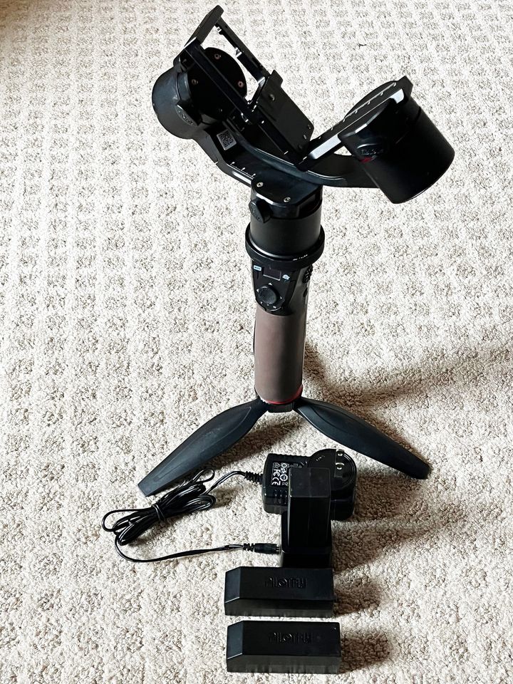 $60 (+shipping). Functions perfectly. Great backup or primary gimbal. 2 Spare batteries (3 total) and charger. Mini tripod attachment included. Supports heavy camera/lens setups, up to 4.4 lbs! Bluetooth enabled for Pilotfly Mobile App. Selling because I'm a gear junky and I buy gimbals, lens, cameras every year.