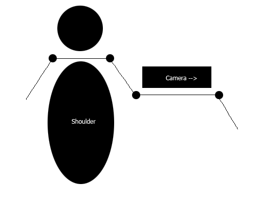 Your graphic shows the camera in front and no counterweight. For that situation (like with DSLRs), I find that I prefer a "chest rig", like Redrock's The Event, compared to a shoulder setup. I find that without a counterweight that the shoulder pad doesn't really anchor to the shoulder. But with a chest setup, I naturally pull the weight back toward the upper chest, locking it in.