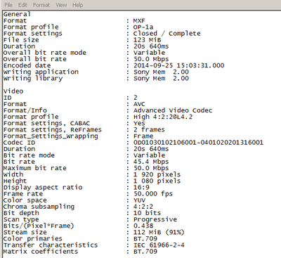 Upon analysis of earlier XAVC MXF files I find that all previous iterations have been written with Sony's writing and library application called 'Sony util 1.0' Whereas these newer XAVC-L 50-mbit MXFs from the X70 have been written by a new Sony writing and library application that I haven't seen before and it's called 'Sony mem 2.0' Why Sony has made changes to the writing and library app is unknown. I guess they have a good reason for doing so. There are other significant changes in the file structure of the two MXF flavours such as CABAC and Format_setting_wrapping as can be seen from the attached JPEGs of the file info’s. Until such time as Sony releases the details for these proprietary libraries I don't see any hope of any resolution coming quickly. By all accounts Edius manages to read these files with no issues. Maybe they have a hot line to Sony's software team. It does make we wonder if this issue is going to appear with the release of all the new XAVC-L MXF capable cameras such as the PXW-X160 / 180 / 200. This could get interesting if it's not sorted pretty quickly. Chris Young CYV Productions Sydney Last edited by Christopher Young; October 9th, 2014 at 09:28 AM. Reason: add info |