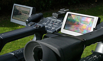 Of course the EX1's screen is far more detailed than the FX1's, but the loss of brightness is very noticeable, and might well explain the sales success of the Hood-Pro LCD loupe.