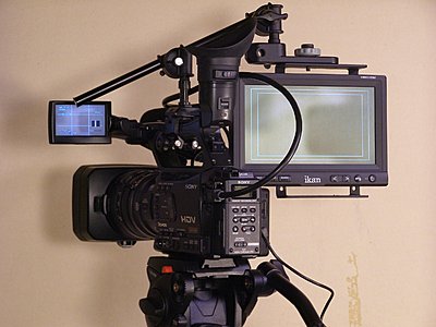 The IKAN monitor allows very precise focusing and is much easier to watch during a long performance. I use the camera monitor to display settings. |