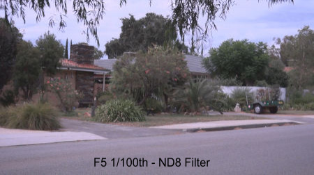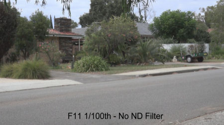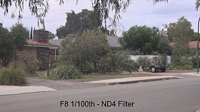 OK , today is just as hot as Saturday but it is a little cloudy and I did a few test shots with ND filters..Now these are "supposedly" top of the range (3 filters cost me $120) so they are no $2.99 eBay cheapies. I did 3 clips with No ND filter, then an ND4 and then an ND8 .... the footage gets progressively "redder" as you go up and especially with a scene with greenery the green content just starts to disappear. Judge for yourself with the pics below....the BIG question is : Do you have to go to manual WB every time you use an ND filter ...pretty much the answer would be yes...now based on the fact that the WB gets "redder" as you increase the ND ..what now would happen with a variable ND??? The way I see it is every time you dial a new setting on a variable ND it seems you would also have to re-balance colour which is a pain in the butt surely!! I'd be interested to know if a variable ND would be any different?? Chris |