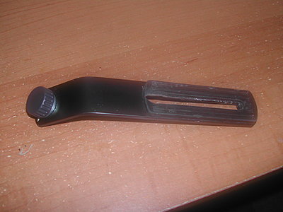 Here's a couple photos of that part...not sure where I first got it, but anything similar that can accommodate a screw with right thread size to fit into the shoulder support will work. I bent the piece in a vise to angle slightly downhill. The ankle (wrist) weight was simply wrapped tightly around this bar, secured with its own strap and then further secured with a piece of 18-20 gauge insulated wire. Let me know if you have more questions. And sure...use the photos however you wish. Dan |