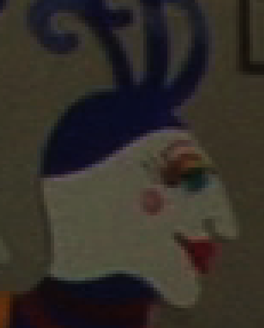 Visual examples are posted below… Results: The FCP version of the Pro Res encode was overall a sharper image and the Adobe Media Encoder version was slightly softer…as if the entire image was being filtered through a very slight Gaussian blur. I first noticed this when toggling between still frames on my HD display monitor. And there is something else going on…when I blew up those same still frames in Photoshop, the Adobe Media Encoder stills all contained a CHROMA BLEED… a tearing effect which almost had an interlace look to it at times. I checked all my settings and this was 1080 29.97p AVCHD footage as camera source and being converted to the same ProRes equivalent. I tried modifying the encodes on Adobe by going from 8 bit rendering to 24 bit rendering…but in each case the chroma tearing effect was the same. This effect has been observed by other users in previous months posts, but I wanted to confirm it here as it seems it has still not been addressed. It could actually be that overall softening effect in Media Encodia may be caused by this chroma bleed. As much as I want to use Media Encoder, because it preserves original source camera timecode, I also want to get the sharpest picture possible. And until there is an upgrade to fix this issue with Adobe Media Encoder, I plan on using either FCP 7's Log and Transfer, or Clipwrap…which in my tests had exactly the same sharp image as the FCP encode did. I will be also posting this to the Adobe Forums so hopefully they will take note...John The clips below are still frames transferred from FCP to a TIFF, then blown up in Photoshop, and then I excerpted a relevant portion. Observe the brown wood border against the white cloth. In the Adobe Media version, you will observe a chroma tearing effect. In the jester's face. observe the blue border bleeding edge versus the white, Also the red mouth shows some bleed in the Media Encoder version. In the closeup of the eye, look at the facial detail on the cheek. FCP version is slightly sharper but you may have to expand the image to see it. Red versus black…you'll note the horizontal red line has a wider bleed on the Adobe version. |
