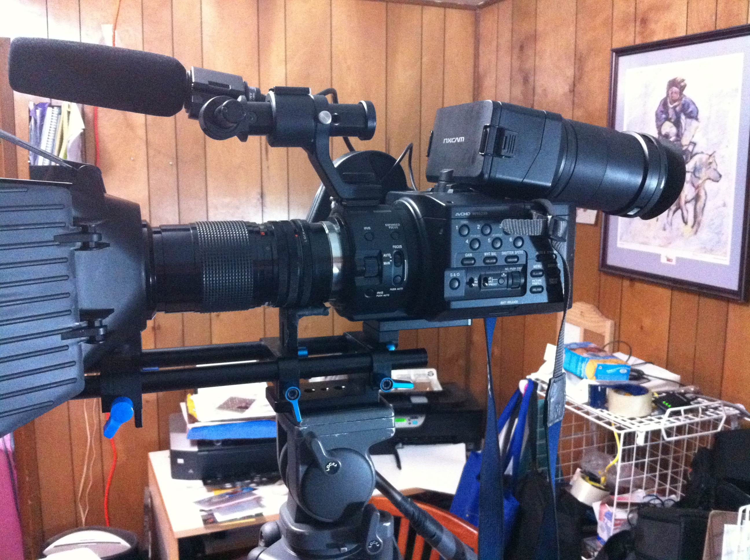 questions about using old Canon FD lenses on the FS 100. I have bought a few of them off ebay, great prices on them in general.They seem to work very well with the FS 100 in my opinion. I personally really like the look, but others may not. This particular video was shot with a Vivitar 28-90mm F2.8 that I bought off ebay for $70. I put a step up ring on it and used my Heliopan. Because the lens is bigger and heavier than the stock lens, I got a cheap rails/lens support/sunshade option off ebay for $80. This is what the rig looks like Anyways, this combo works really nice. I am a little spoiled by the kit lens range, and wish the FD lens was both a little wider and a little longer (a 20-100 F2.8 lens would be TERRIFIC, but I doubt they exist for any reasonable price). That being said, this was the best ranging 'fast' lens I could find.....and to be honest, it's quite good. I am now officially an ebay addict as I search around for hidden 'gems' in the FD mount. Again this video was shot entirely with the 28-90 F2.8. It's a typical test video, nothing too exciting, but you can get an idea of what an FD lens might look like as it is all entirely ungraded.....I didn't even fix exposure. If I messed it up when shooting, it stayed that way (mostly because I'm pretty busy shooting and editing for clients right now) so nothing was touched up at all. Here's the video link: |