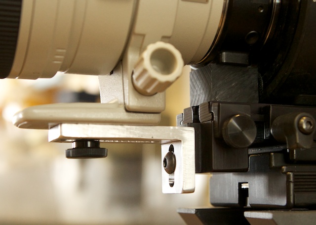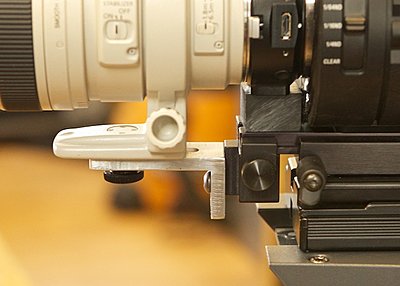 Here's a shot of my rig. I have 6" extensions for the rails that can accept very long lenses. |