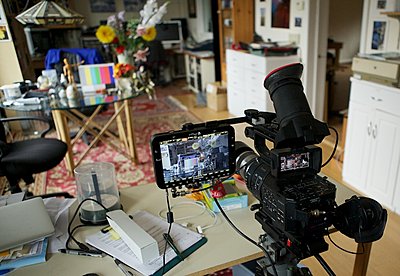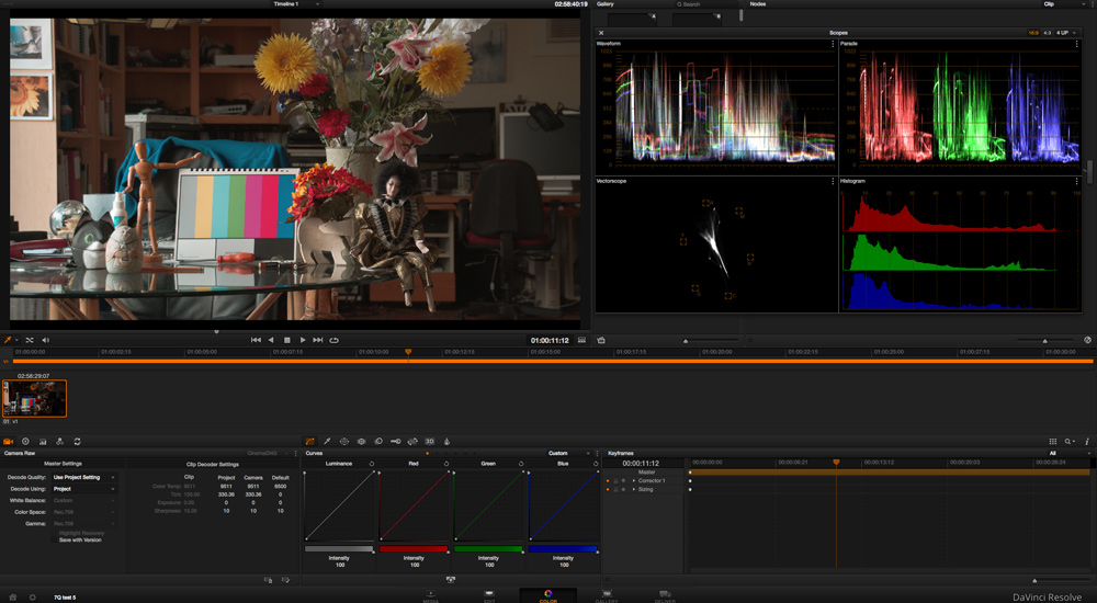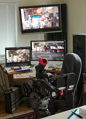 Plug the SSD into your computer and it auto mounts. Go to Resolve I use latest V10. Import the DNG folders as clips. Then I have a LUT I built to "normalize" the image and I also have one that makes the DNGs look like they do on the Odyssey. They come in very dark looking. Just right click and choose 3D LUT from the menu and load my LUT. Voila you have a balanced image. I will be refining my LUTs but this is a start. Then just render out to ProResHQ or whatever to your RAID. Now you are ready to edit in FCPX or whatever. Your choice if you keep a copy of the DNG's or not. If anyone wants the LUTs I will share them PM me. The images below shows the scene I shot and how I hooked the 7Q up to my eval monitor so I can AB that and the Resolve image. The scene is only lit by the natural light coming in from the large north window in my studio. It also shows my sturdy bracket for the Odyssey. The bracket uses the same system as my EVF bracket and is very versatile it can be mounted in front, middle of the camera right left high or low or on the External cheese plate on my shoulder kit in many different locations, more on this soon. I do have them in stock at my webstore.