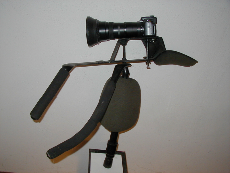 I've made several variations on my own shoulder-mount and have used them with everything from 17-lb. Sony Beta camcorders, to 14-oz. still cameras. I've designed them to spread the weight over several contact points and I can hold them for long periods without significant fatigue. The foam pad that rests on my ribs is a key to offsetting front-heavy cameras. I've made them to precisely fit myself, which no mass-produced model could do. I can squeeze-off still shots at full zoom and slow shutter speeds, with the stability it gives me. The ability to shoot steady video at full zoom and not have the limitations of a tripod, has a high importance, especially with wildlife and sports. Here is a picture of the full rig for my VX2100 and one for a still camera. I rarely leave the bottom, counter-weighted section attached and have much smaller alternative mikes, so it isn't as cumbersome as you'd think on most occasions. The way it's set-up for the still camera, is how it usually is for video. If you search my name on the Support Your Local Camera and Under Water, Over Land forums, you can find detailed descriptions of how they're made. Here's a link to one of the threads. Follow it for the several replies I made. http://www.dvinfo.net/conf/showthread.php?t=81866