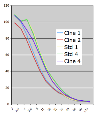 Cine 4 is my favorite because it gives more shadow detail and rolls off the highlights. The Standard 4 has the same shadow detail as Cine 4 but has more linear highlights. I am not sure what's going on the top of the standard curves - it's a bit weird and might be an error on my part, but that's what I measured. What I am looking for is a pleasing image that's reasonably flat and gives the most options in post. Take this all with a grain of salt - I did it hastily on my kitchen counter so I could find a "favorite." Hardly scientific. Last edited by Eric Pascarelli; January 10th, 2008 at 02:01 PM. Reason: conjugation |