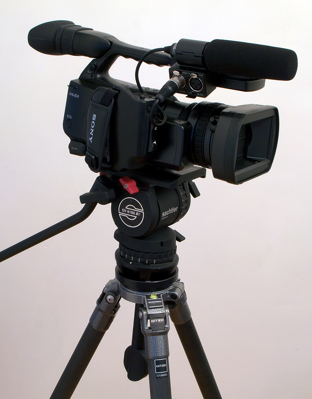 below is the sony on: 1. sachtler system 0650 which is their DV6SB with Sachtler's Carbon sticks. amazingly, this rather light looking setup is very heavy (>20lbs). the one touch lock and release is still a 2 hands operation as one hand is needed to hold up the camera while the other adjust each leg's new height. takes practice but some may not like it. the petrol case with the system is extremely nice! 2. sachtler dv8/100SB head does not look too large for the sony, as you can see. i love using the gitzo GT3530S carbon sticks here. the 100mm bowl is gitzo's G1424 and it matches perfectly with the sachtler dv8/100 sb 100mm assembly. i found it easier to adjust height with the twisting knobs on the gitzo sticks and the weight of this setup is about 8 pounds lighter than the sachtler 0650 in the other photo! counterbalance on either with or without extras on the sony is ideal with either setup. in summary, the dv8/100 sb for the sony pmw-ex1 and the sachtler 650 with the dv6sb for my B camera. paul |