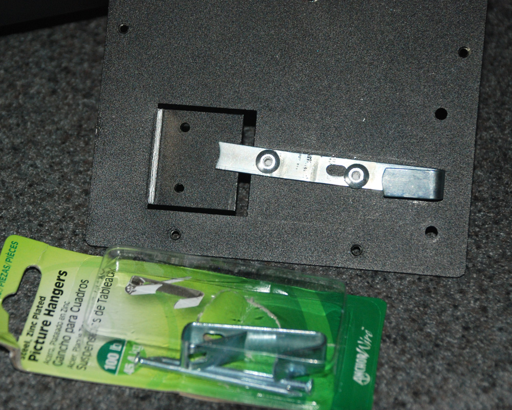 So, after quite a bit of filing to remove any burrs and smooth all the edges and corners, it was time to assemble the pieces. I chose to paint the bracket only after everything was done and tested, because I knew this was going to take a little adjusting and changing as I went along (like cutting down the hook!). I assembled with more rivets – I like rivets. They are easy, strong, unobtrusive, paintable, and did I mention I like them?