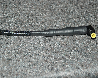 First, I built a small DC power lead using the Radio Shack “D” Adaptaplug, and extension cable, some protective braiding, and more heat-shrink.
