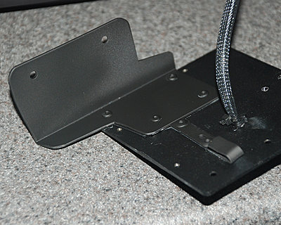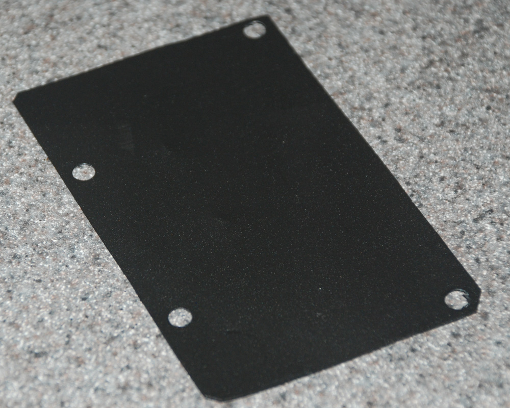 Prior to assembly, since there is quite a bit of metal in the base, I chose to add an insulating layer. A piece of thin plastic would do the trick, so I used an Letter-sized sheet of plastic (used as a cover or back page for reports, etc. – bought a pack of the stuff at Staples a couple years ago). The first picture is of the “cut to fit” version with holes punched out for the screws.