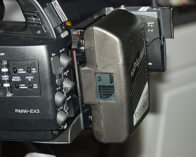Thanks for the input. Actually, the only difference between this and the AB supplied for the JVC camera, is that they converted the 14.4V supply down to 7.2V and added a dummy battery block to connect to the pins in the battery compartment - no fuses were bypassed or removed. Basically, it's like running the camera off a D-Tap - except that there is still a free D-Tap! This is essentially what you get if you buy the Gold Mount for the EX1/3 from AB, but they mount theirs under the camera and I didn't want to do that. Would totaly get in the way when I add rails and my 35mm adapter!