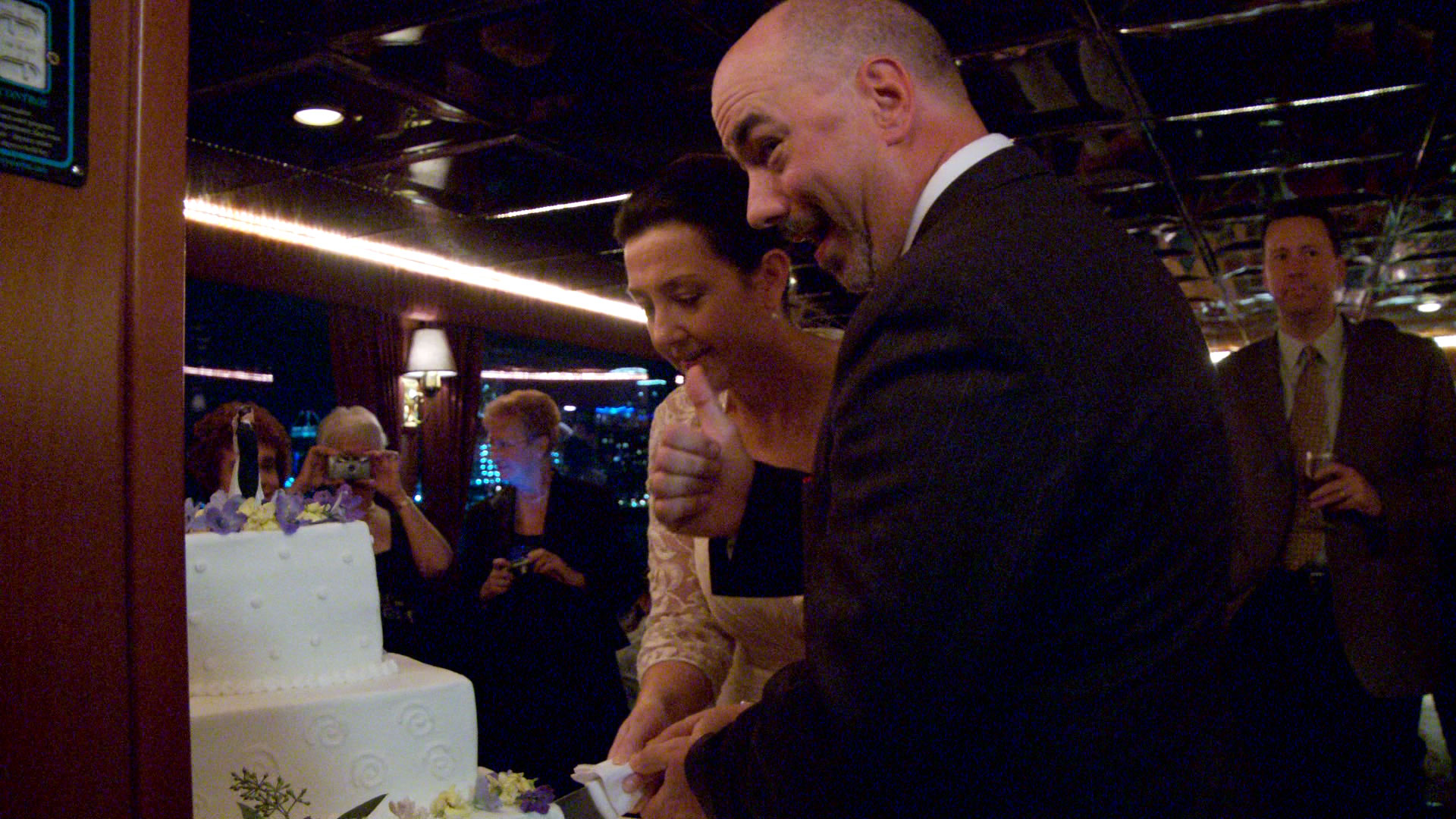 By the way the middle aisle was the only way up to the front as I would normally have used a side aisle. Yachts are tight spots with so many people after all! The poor photographer didn't get a chance to get a front-facing processional shot as guests blocked her way before she had a chance. I literally just made it made it down the aisle to grab the processional as to me nothing is worse than shooting the backs of people's heads. The photographer and I also missed the beginning of a toast because no one bothered telling us! We were upstairs eating our meal when he heard someone downstairs on a mic so we gathered our cameras as fast as possible to capture it. Oopsy...My last wedding was the complete opposite whereas the reception coordinator or DJ always let me know at least 5 minutes in advance of any traditions like cake cutting or the bouquet/garter toss. I loved that luxury. At this wedding I would have missed the cake cutting had I not been in the vicinity when they were about to do it. Trust me, I politely moved my way up there past the crowd immediately after I got that shot. I did that as proof in case I was questioned by the couple as to why I stood at the front of the ceremony when they told me not to. I did not want to shoot the ceremony handheld but the name of the event video game is rolling with the punches. I wasn't stressed about it or anything...more just confused and hoping everyone would take their seats but the ceremony lasted I think all of 5 or so minutes (I kid you not). Looking at my camera's timecode the processional was at 6:06pm and the first kiss was at 6:10pm. Guest interference is covered in my contract. Thanks for all your tips, Thomas! I will be posting a clip or two when I get something nicely put together. I'll post some full-res stills soon where I used 18dB and 12dB of gain. The ceremony was entirely shot at 12dB. I'm not sure how the EX1 compares to the DSR-300s but it's rated at F10 at 2000lux if that helps. That's in 1080/60i mode. 1080/24p is equivalent to ISO400, 720 = ISO500 and 1080/60i is ISO800 according to Adam Wilt. |