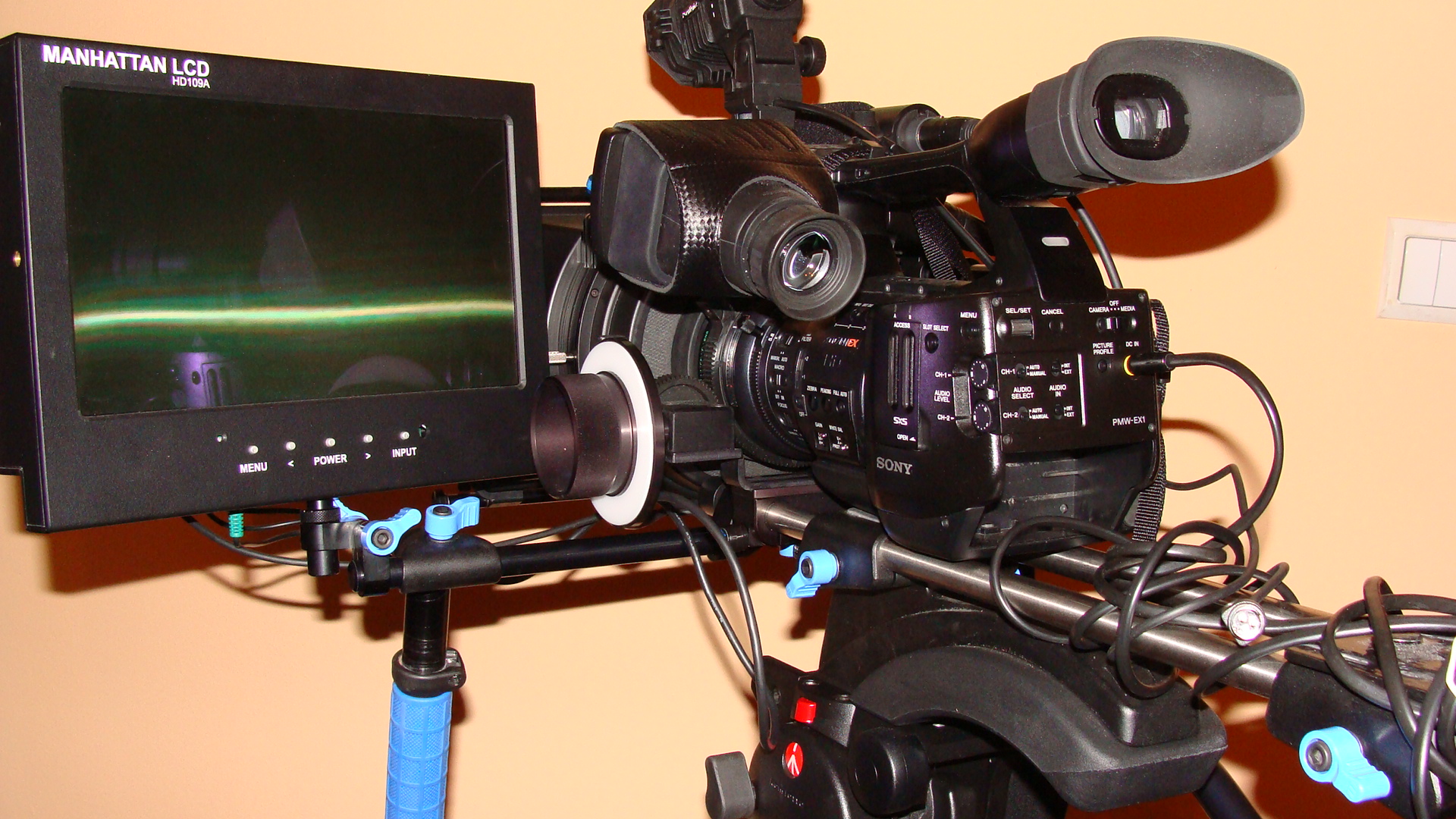However, I need advise on which of the 2 new upcoming Manhattan models (the HD071A or HD8900) I should pick to mount on the left handle of my RedRock shoulder mount, as depicted below with and without my current HD109A (too big as you can see)... The HD071A would fit better and handle easier with this rig, while the HD8900 would certainly give me a better picture to focus on. Tough choice! Comments welcome