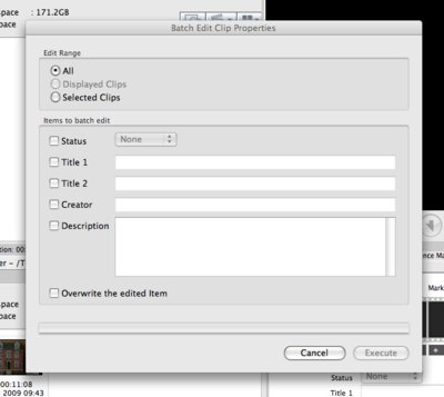 Steve: This has been added you can now batch edit metadata across all clips or selected clips. I was told late November for release. It has to be available when the EX1R ships so users can manage the new SD and HD modes.