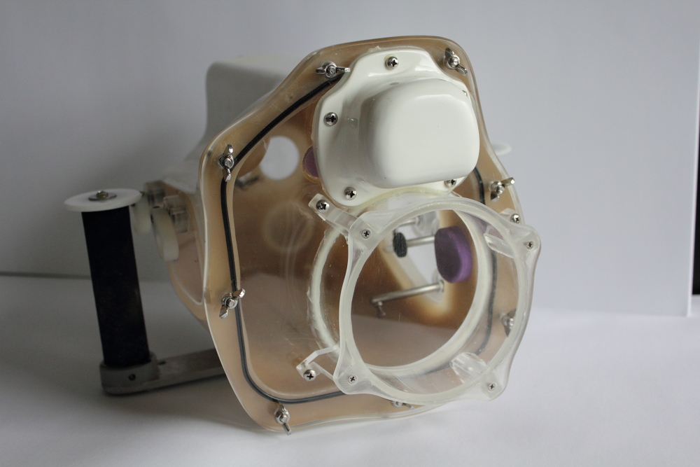 Custom built by Dave Kelly. Provides - on/off power - zoom - record - ND filter select - manual iris - focus auto button Been an awesome housing working 100%. Light and strong, Rated to 10 metres. |