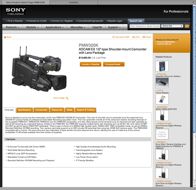 now that is making it even more awkward: as well on my Macbook Pro, as on my iPad and my Mac Pro, I never succeed in opening any Sony page in Safari. I installed Firefox especially to avoid the problem, but since my standard browser is Safari, I wondered if anyone could make that work. But if you can open this Sony Product Detail Page PMW320K with Safari, then I have no clue what might be wrong with my Macs! Ennoying, to say the least... |