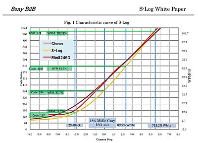 +1 for what Chris said. It is vital with log that your mid range is in the correct part of the curve and in fact the lower down the curve you are the less compressed the image is. This is the biggest mistake made by some users of S-Log and similar gammas. They forget that this is a log compressed system where each stop of additional exposure is in effect allocated only half of the data of the previous stop. If you place mid grey at 38% as designed, even simple 90% reflectance white (which should be hitting about 68%) is being compressed 9 times more than mid grey. Your highlights are 42x more compressed than mid grey. Over exposing skin tones and mid tones makes it very difficult for the colourist to extract a meaningful amount of data and thus reconstruct the subtle tones and textures that make faces etc look pleasing to the viewer. That's why the EI values only go up and not down, so if exposing correctly you will only ever under expose with EI which pushes mids down the curve. This is of course where linear raw excels as there is no log compression so you can place your mid tones wherever you want within the cameras dynamic range.