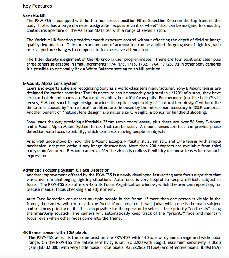 Re: NEW! Sony Announced PXW-FS5 4K, Pre-Order Now wth $0 Down