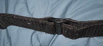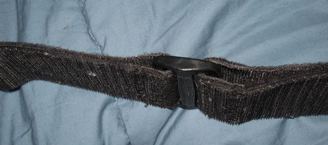 Here's the Pilot/Merlin vest strap config, at least as far as my vest has it set up. There's one strip wound around the plastic part and back onto itself, and then another on the other side. Then there's a flat "extension" on one of the sides.