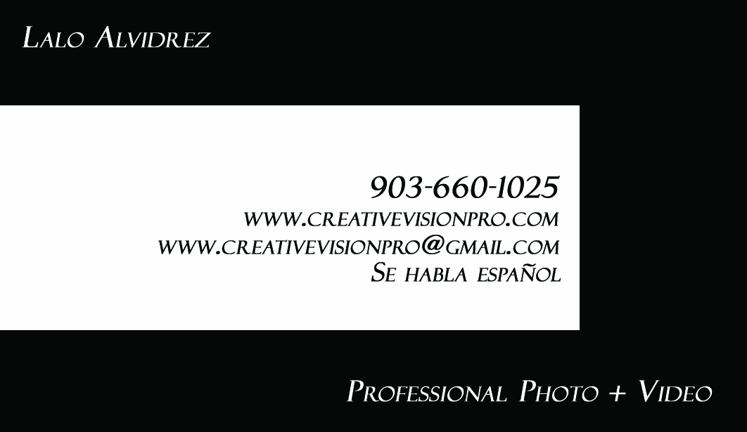 As far as your graphic design goes, make your phone number larger. If people have to squint or use a magnifying glass to call you, you're not starting off on the right foot. Overall, you're using too many different fonts or variants of the same font. Pick 2 different fonts or variants and stick with those 2. More than that and it looks very unorganized, amateurish, and is difficult to read. This is especially evident with your business name. Make it all the same font, or make "productions" it's own font. The "photo/video" text in the middle looks out of place. Maybe try putting "Professional Photography & Video Production" underneath your business name. With your text, I suggest sticking with keeping everything capitalized, everything lower-case, or capitalizing the first letter of each sentence/word. Speaking of fonts, don't be afraid to experiment with fonts that look a bit more bold and eye-catching. Look at your layout and use your negative and positive spaces to achieve balance. Also, take another look at the layer styles/effects you're using. Drop shadows and beveled edges have a tendency to be overused, so, I'd suggest either dropping them or using them with a lighter touch. Your logo has quite a dark outline, and you have it on a very dark background. It's already somewhat difficult to see clearly, and this problem will be magnified if you get these printed. If you want people to start remembering and recognizing your logo, you'll need to create contrast so it's easier for people to see. Try using a different colored stroke or outline. You can use a very small amount of a complementary color (such as orange or golden yellow) to make the design really pop out. I hope this helps. Please understand that I'm not ripping on you or trying to be condescending. I learned that being direct and blunt with critiques is the best approach, and it's the same thing I expect when I present my work to clients or the boss. |