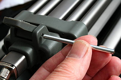 1 Plastic pad fits shaped side to the tripod lower leg 2 Plastic pad in place in socket of latch body 3 L shaped spring fits in with short side over the top end of the plastic pad 4 Spring in place 5 Align latch lever with holes in latch body 6 Insert pin and push in 7 Tap in pin fully using a metal rod or punch if available. A nail with the point removed does fine. Support latch while tapping in the retaining pin. 8 Finished and back to full height. Hope this is useful to somebody. Thanks again to Matthews for first class customer care. PS no cement required - heading refers to instructions on Airfix model kits. Some of the Brits at least will understand. Last edited by Colin McDonald; October 4th, 2009 at 01:31 AM. Reason: Typos |