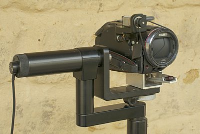 I was suggesting tape merely as a proof of concept. Below is a picture of a flexible handle that has been machined to suit a Weifeng head handle clamp; no tape was used. It is made out of PVC and tapered to improve flexibility and bent to improve comfort. The spring tip provides even more flexibility for fine control of long lenses and small sensors. Your mentioned that a colleague coupled two Manfotto handles together. Did this set-up solve his problem? You also mentioned that the added torque was causing play in the 502’s tilt hinge. The torque required to tilt at a given angular rate should be independent of handle length. As the handle is lengthened the required force should drop and the rate of hand travel increase but the torque should not change. For remote work I use a motorized head (see picture below). The ironless rotor motors with their backlash free gear boxes did not come cheap but they give me a useful range of speeds. http://www.dvinfo.net/forum/attachme...1&d=1509705550 |