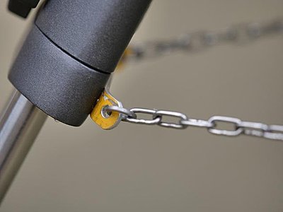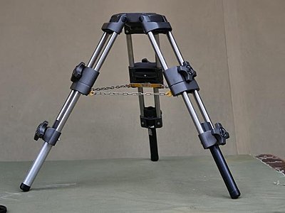 "My reply was to Pete Cofranesco in the Tripod section of DVInfonet headed 'Sachtler Spares’. If the aim of the spreader is just to stop the legs spreading accidentally this can be achieved cheaply. I have been using stainless steel chains joined by stainless steel spring washers (see photos). The gap on the washer can be increased by twisting and then twisting back again once the link is inserted. In one of the tripods shown the chain is attached to the tripod while on the other it is just a loop slipped over the tripod at a convenient point. Thanks Alastair Traill" |