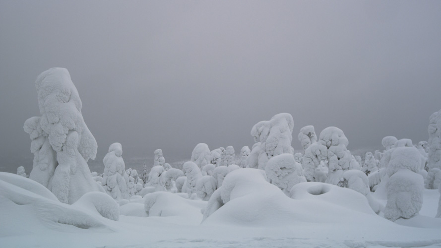 To get the best possible sampling rate one should 'exposure to the right', and this is what I always try to do. The difficulty is, in fact, one should not exposure completely up to clipping, but instead up to the point at which the highlights start to compress, i.e., up to the point that still retains linearity. The image below of trees covered by icy snow on a cloudy day is pretty much like shooting a gray card while asking for a rich amount of gray tones. So, it really pushes a camera to its limits. In this kind of conditions the 8-bit HDV and DV cameras tend to generate images as if the trees were covered by bit dirty snow and this shot taken with Red One is the best (motion) image I've ever got of this item. But still, the amount of captured tones is rather small and when I open the flat image with the gamma curve tool the 12-bit sampling rate prevents me from getting as much tones as I would like to have. It's going to be interesting to see next winter how the new Mysterium-X sensor in 16-bit Red Epic-X will manage in similar conditions. Just in case somebody gets the idea that it's gray and dull here, attached here also couple images taken last Saturday under bright skies. |