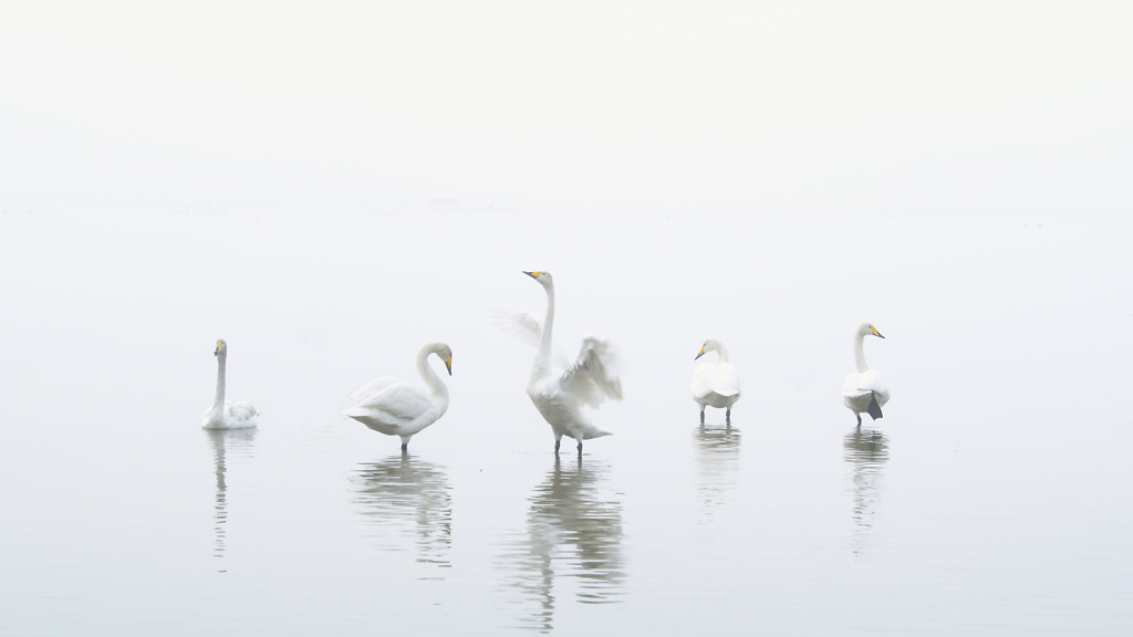 As a Canadian Graeme was well aware of the problem of shooting snow and the difficulty of getting details captured of brigth pure snow. He explained that in this kind of conditions the human eye is very adaptive and is able to adjust the dynamics extremely fast. That is, when we move our eyes from one spot to another, the eye acts like a high dynamic range system quickly adapting itself with different levels of light. In my ears all this makes a lot of sense and is in line what I've elsewhere read of the eye. The conclusion was, it remains a problem to come up with photos that are alike of what our eyes see in such conditions. Here's another image of swans that I shot last spring. This was taken early in the morning during the sunrise. The sun was on the left and everything appeared extremely bright. After a rather cold nigth when the sun came up there was a lot of mist in air for a moment above the water reflecting light beautifully. Since last spring I've wondered how to color grade such an image. It seems impossible to get anything that resembles what I saw -beautiful bright white tones with slight rays of yellowish/reddish light. After discussing with Graeme, came to the conclusion that likely simply can't reproduce what I saw. So, tried another approach and tinted the image to come up with some delicate tones that created the impression of a bright morning. If you compare to the other frame without the slight tones, you'll see, I guess, what I mean. Or, how is it in your eyes, does the latter version Swans-2.jpg without the tinted colors give you an impression of extremely bright light? In my eyes can't avoid thinking the latter one creates a feeling of a foggy morning as if the sun was behind the clouds. |
