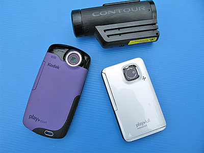 There are lots of cams that have optional housings, GoPro, FLIP ..earlier Contour models, but I like these because - they are typically still good - submerged to 3 meters .. light weight (white one is 3oz) and nearly idiot-proof. The Contour is the new TOUR model that sells for about $200 .. the white is the new Kodak Playfull made to a $100 price point .. and the 'old', Kodak zx3 Playsport, which is a great cam. I have bought maybe six on Ebay - none over $75. The limitation to these is 'pressure'. You cannot SCUBA .. you should not attach one to the leg of a competition waterskier .. you should not drop one from a kite 30 meters off the water - too much pressure on the seals bricks the cam. (I do not SCUBA .. but know the other issues well.) Jim |