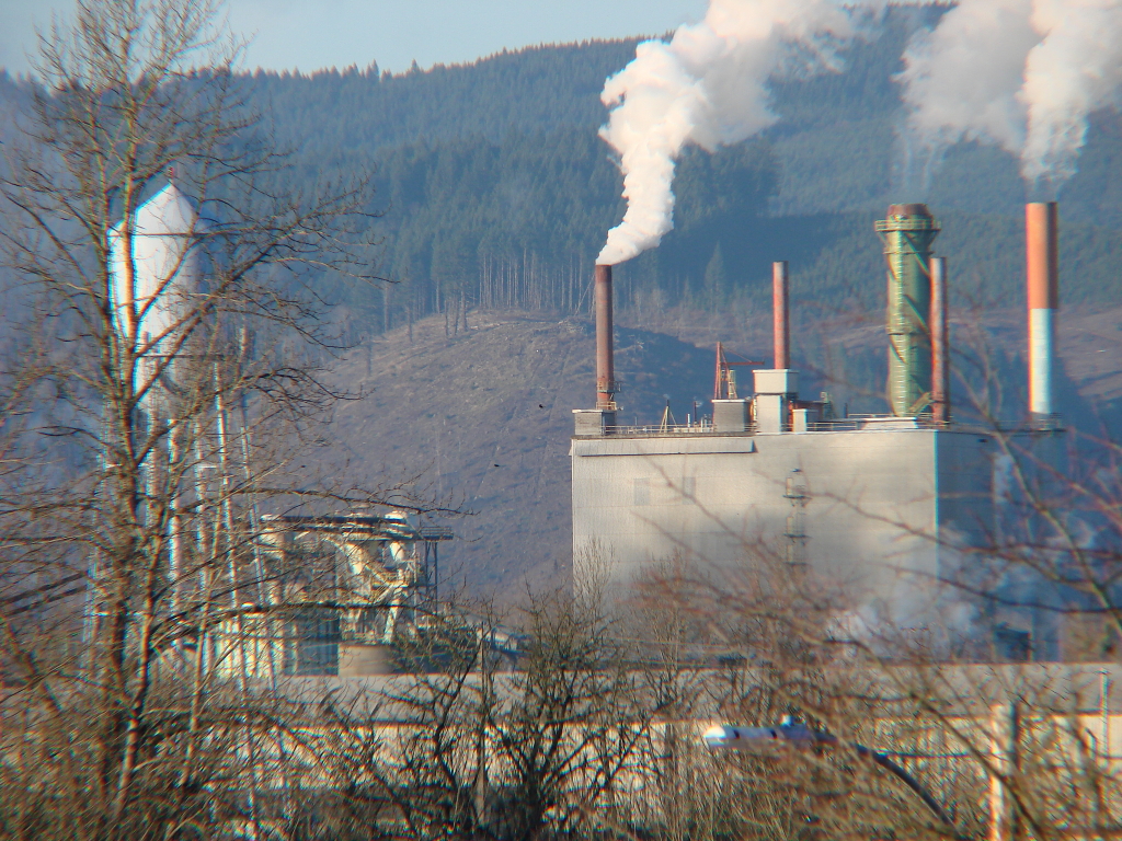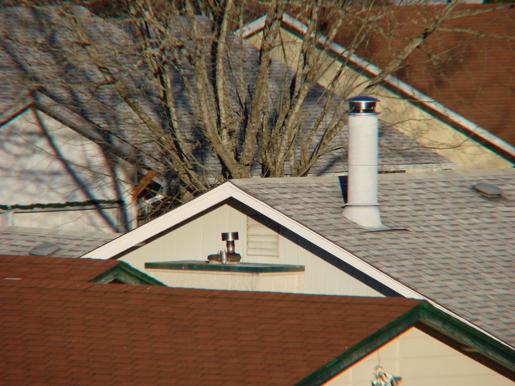 Here are two photos I shot today with my Sony H5 digital camera, using the Sony VCL-HG1758, a 1.7X telextender. Although the center of the pictures seem fairly sharp, the quality goes downhill towards the edges. The center smokestack at the timber-products plant and the trees just behind it look good, but the stacks and watertower to the sides are blurred. The rooftop scene shows the center peak and a small metal duct below it in fine detail, but the larger duct above it and the roof edges show quite a bit of softness. You have to download the full-size images to see most of the problem.