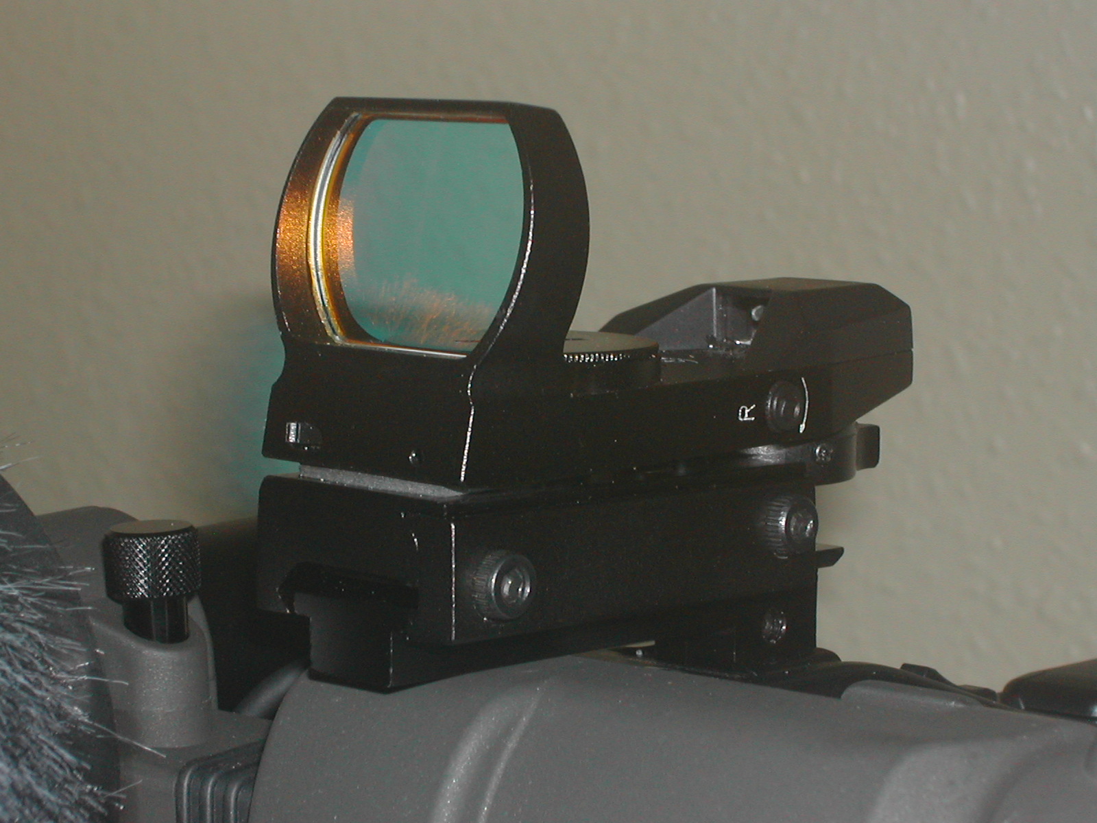 Thought you might like to see a photograph of the Red Dot Sight and the Xtend-a Sight mount fitted to my camera. Works great.