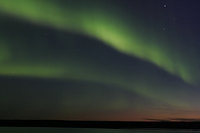 For those that have never seen the Northern Lights. The pic was taken right after the sun had set you can still see some of the orange glow on the horizon. If you look at the stars in the background you can see that the shutter had to be open for a number of seconds to capture the image.....I only wish it was video.