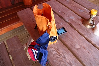 Dale, when it comes to wildlife I had just one clip/scene and I found it too unsteady. I had some hare tracks and a glimpse of a snow shoe hare. But unlucky for me it ran away too fast. Just a stuttering clip of it's back :( I tried with a still from the video and then the runaway clip. Look for yourself. I had to figure out how to make some shooting, down hill (down the slope). And as the good husband I am, I stole my wifes little makeup bag :) I made some holes in it, and whoops there was my "down hill film bag". You can see it on the 2 pictures attached. Well, on the video it's turning a little much down to the right. Sorry for that folks, but it's the shape of my body doing that :/ Geir Inge |