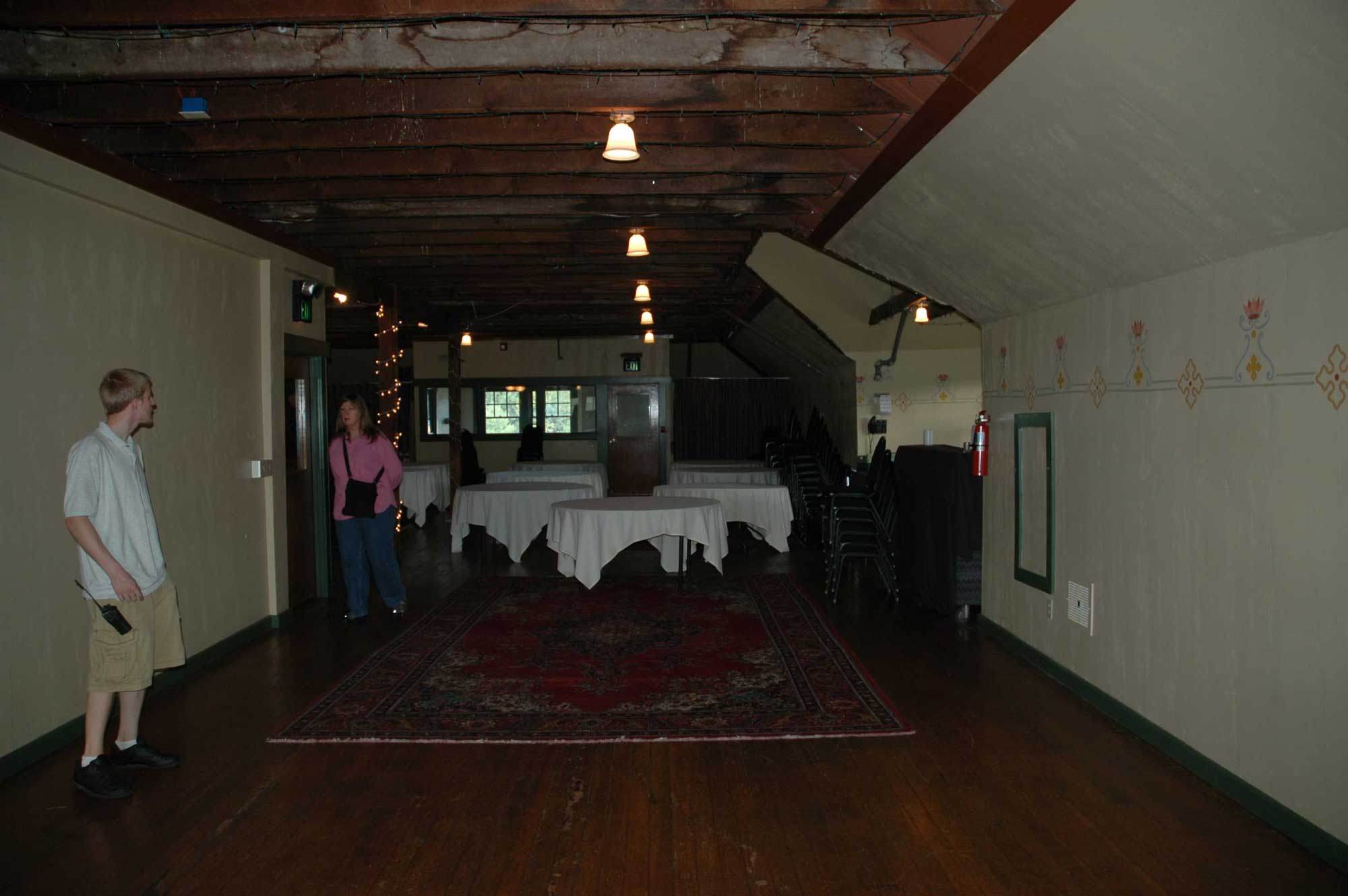 The Ceremony and Reception take place in a room called The Attic which is very dim and we will have to depend on interior lighting since the few windows will be blacked out. The only lighting there is are ceiling Xmas lights and a few dim incandescents. We can bring in an extension cord and probably have the room to put up 1 light. Any suggestions? Here a few pics. The Bride and Groom are standing where they will be(there will also be groomsmen and maids). Note that it will be darker since the pic was taken in the summer, with a flash, with the windows open. Somebody suggested a flood light. I have done so many weddings, but never brought any kind of light, since I prefer not to use them. Since this is so dark, I am making an exception. |