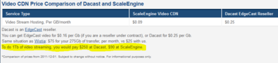 Since most of the live streaming I have done has been to relatively small groups, DaCast works great. Especially since I can embed the DaCast player in my website with no DaCast branding.[/QUOTE] I have a Dacast account too. But not for long. Dacast is just a reseller for Edgecast. Scale Engine is both cheaper and better. It's very easy to use and these guys are sharp. And most any good service will allow embedding the player. Give them a look. Dacast is nice but they stumble with too much stuff. Their still behind on IOS etc.. But I could see how they would be very suitable for a lot of streamers. |