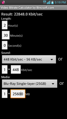 Here's a link to a bitrate calculator - DVD-HQ : Bitrate & GOP calculator I believe the default audio bitrate for Blu-ray is 384 for purposes of plugging into the calc, don't have access to my encoder right now to look. As an example, 2.5 hours (150 minutes) comes up with a recommendation of 20700. Usually a good idea to go a bit lower for safety, to allow for menu overhead and such. Motion menus will further lower the number since they take up additional space. If I have 5 minutes of motion menus (5 menus of 1 minute each), then I add 5 minutes to the video length when calculating. So maybe use 19700 or 20000 (19.7 or 20) for instance. What you don't want to have happen is that you spend hours encoding only to end up with a file just a tiny bit too big for the disc and then you have to start all over! What software do you use? From Adobe Premiere, Dynamic Link to Encore will automatically adjust the encoding to fit, but many users don't like DL, myself included, and will use Adobe Media Encoder to manually create the assets for DVD and Blu-ray. For Blu-ray, you will have a choice of MPEG-2 or H.264 encoding. For short projects (at high data rate) an MPEG-2 file can look as good as H.264, but for longer videos at lower bitrates, then H.264 has the definite advantage since it is a much more efficient codec. Thanks