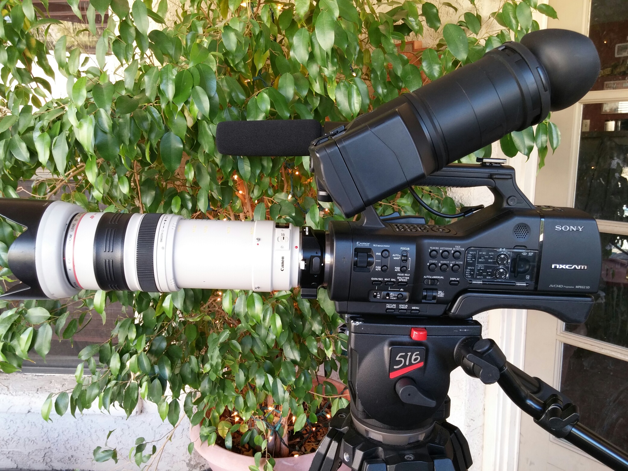 Since you are discussing Canon lens options I thought I would throw some info to you on a little known Canon lens. In the early nineties when I was a full time sports photographer I converted from Nikon to Canon. This was the first lens I bought. I thought it would be good until I replaced all that focal range with their f2.8 zooms. I did and It was good. In fact it was so good it continued be a work horse to this day. It is the Canon 35mm-350mm L F3.5- F5.6 USM Super Telephoto Zoom Lens. I would never recommend a super telephoto zoom lens unless it is this one. You can’t make an extreme lens like this unless you put money and quality into the manufacturing. All of the cheep one have problems someplace. This lens is tack sharp at all apertures and all focal lengths. The good news is it is discontinued and not expensive anymore. I think I paid close to $2,000.00 for it back then, now I see them on e-bay everywhere from $600.00 to $1,000.00. For six or seven hundred bucks it would be a great addition to add to your quiver just for its extreme capabilities when you need it. I know it is too slow to be a good wedding lens. These days I use it on my EA50 when I am in the back of a ballroom and I have to shoot a guy on the stage, head and shoulders tight for the I-mag screens. If you have a need for a long reaching lens this could be it and you can zoom all the way from 35mm to 350mm. That is pretty cool. For video it is obviously a tripod only lens. With that said I am comfortable using it without rails. If you are a DSLR guy you would be using the lens collar it comes with and suspending the body if you do not have rails. This is heavy, clunky, monster of a lens. You are not going to get a smooth live zoom out of it. However, once you pick your focal length there is a smooth/tight ring on it that can lock the zoom if you want to. This thing is “L” series sharp and I love having it when I need it. If you can find one in good condition on e-bay it might be worth considering if you have a need for something this extreme. For the picture of the moon I broke all the rules just to see what it would do. It is an untouched .jpg from my EA50. The lens at 3500m, I extended that with a Canon 2X doubler, and I am pretty sure I used the 2X in camera zoom. It should have turned to mashed potatoes after all that but it is not that bad. Just an option? The moon picture does NOT represent this lens being sharp. Video looks much better than all the magnification I put that still through. Steve