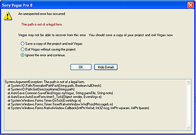 Ian, if you look closely, the error came from Auto Save. It tried to save your project and either the file name was strange, or a folder was missing, or something. I'm guessing a missing folder. Here's what it does: