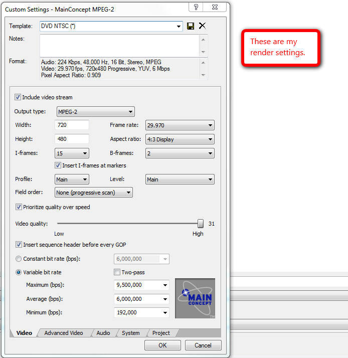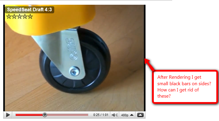 I tried changing the Project Properties width slightly ( 1445) but it had no effect. I also tried changing the render width manually to (725) and it would automatically change it to (736) but it did not eliminate the bars either. Anyone know how to fix this? Any help would be appreciated. Thanks. |
