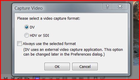 When you choose "DV", it uses the old external capture app used to capture DV footage from older DV cameras or HDV cameras set to output DV.